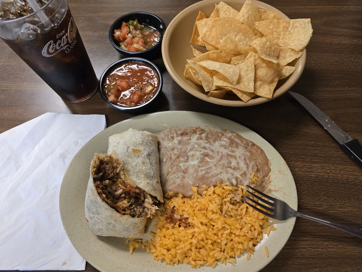 Ordered takeout. Lady (I'm assuming owner?) was very friendly, chatting about and to my son. Offered to help bring the food out to my car since I was holding my son. Order the Pico de Gallo. Super fresh. My wife would go back just for it. I got a burrito mojado that was quite tasty. Wife got a 2 taco meal. We'd both go back