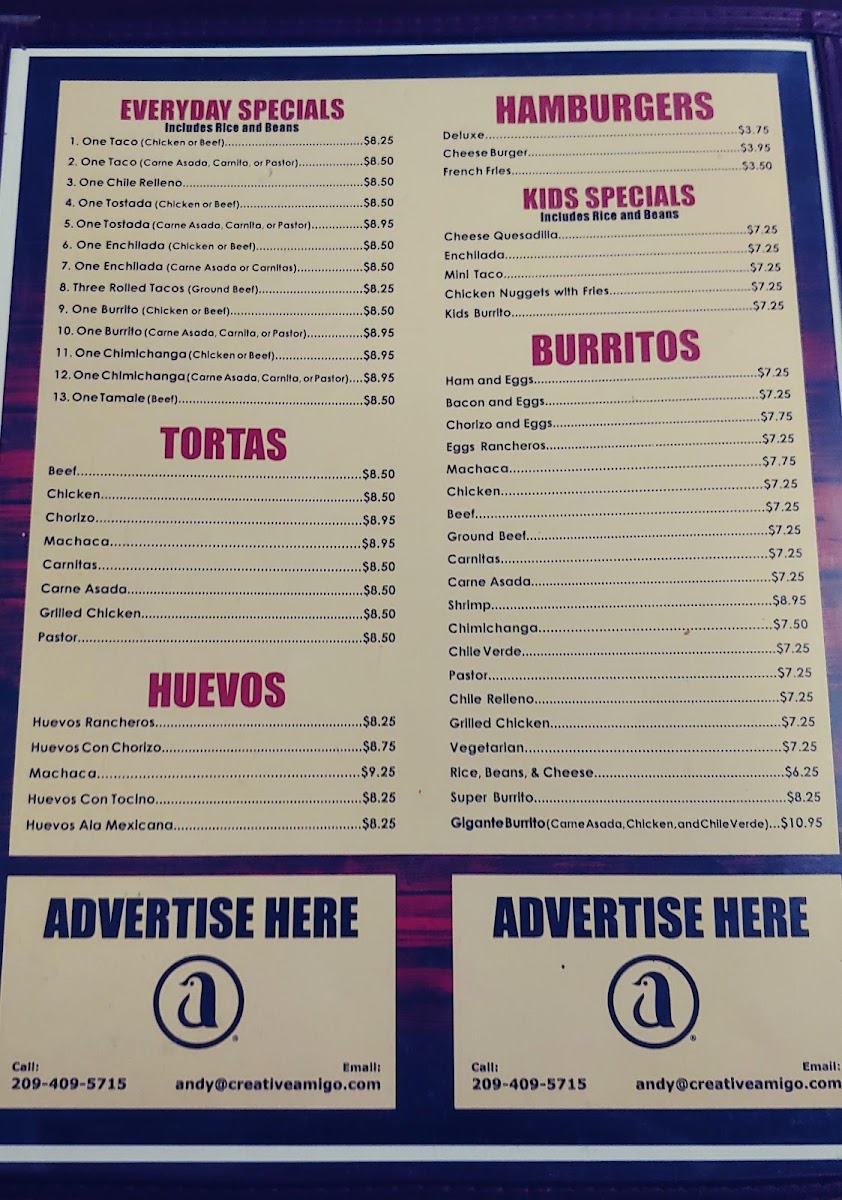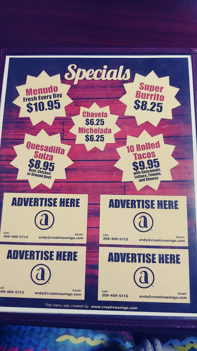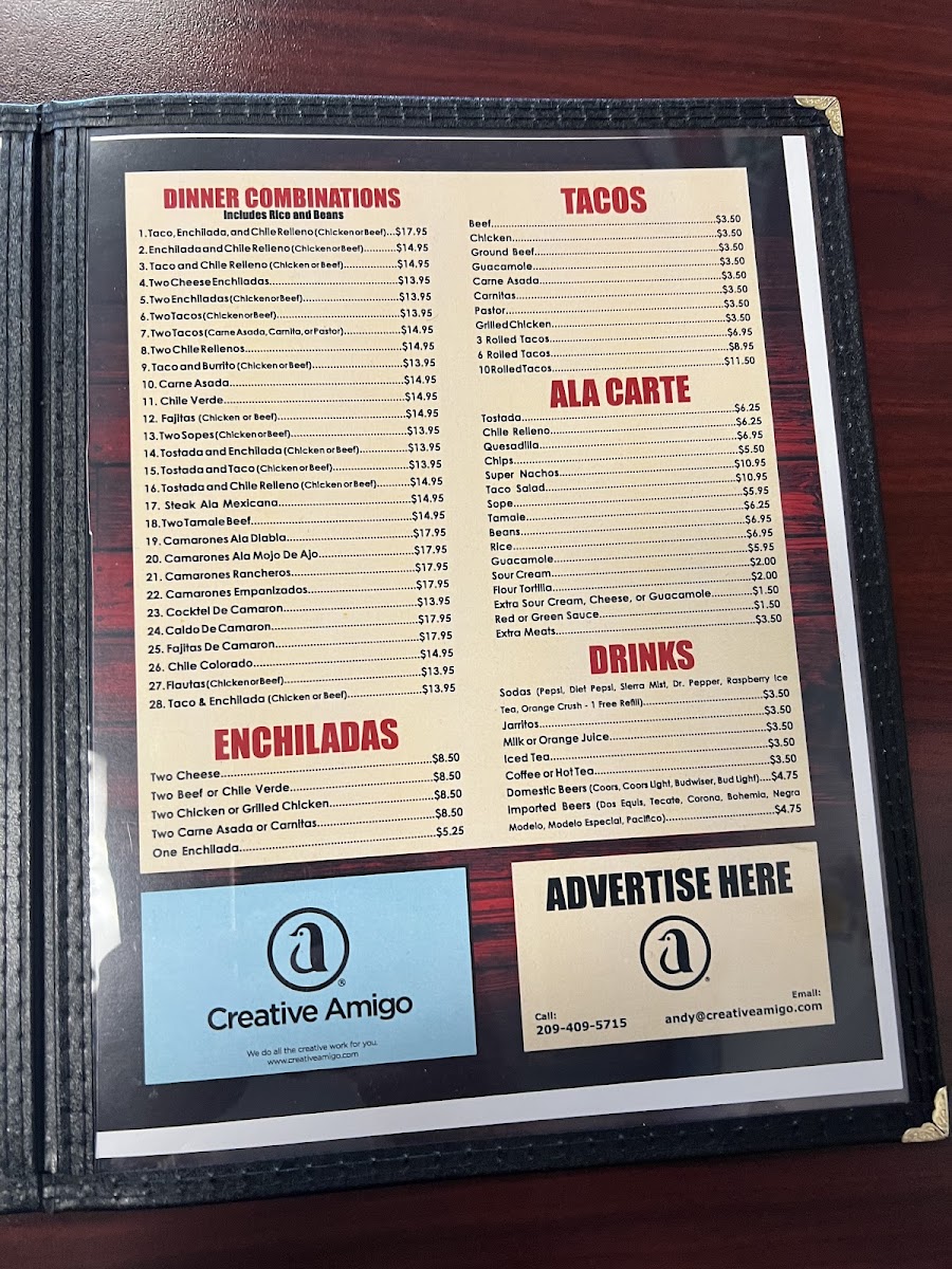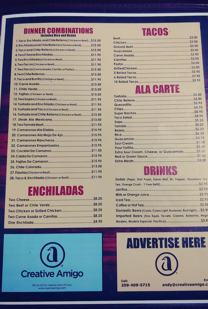 Beverages include popular Mexican sodas and a small selection of domestic and imported beers, providing refreshing choices that suit the laid-back vibe. The menu’s approachable pricing and generous portions reflect a place where you can feel comfortable lingering with family or friends over good food without hurry.